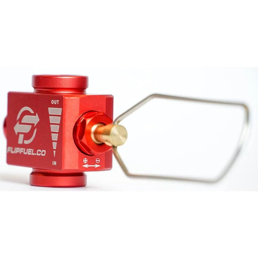 The FlipFuel Fuel Transfer Device Gas Refill Adapter is a device that transfers leftover fuel from one partially filled canister to another. Use FlipFuel® to consolidate fuel into one canister so that you can carry a full canister and recycle the empties.