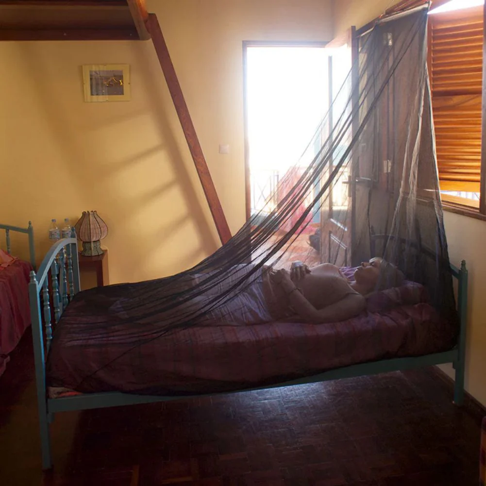 The Lifesystems SoloNet Single Mosquito Net uses tough, lightweight materials designed for versatility. The unique integrated 'Quick Hang System' enables this net to be hung in a matter of seconds. The spreader bar ensures that the netting hangs away from the body, improving protection and ensuring good airflow. The built-in groundsheet and the 1001 mesh netting is designed to stop crawling insects including spiders, bedbugs as well as flying insects from entering the net. The SoloNet is designed for indoor or dry outdoor use, the net can be used on single sized beds by securing the net in place using the lashing points positioned on each corner of the net. Alternatively, most roll mats and Thermarests can be placed within or under the net.